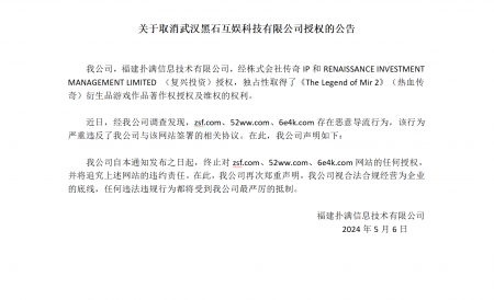 202405-18好体育官方网站下载信息技术有限公司(以下简称“我司”)经株式会社传奇IP 、RENAISSANCE INVESTMENT MANAGEMENT LIMITED (复兴投资...