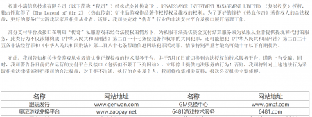 我公司,好体育官方网站下载信息技术有限公司,经株式会社传奇IP和RENAISSANCE INVESTMENT MANAGE...